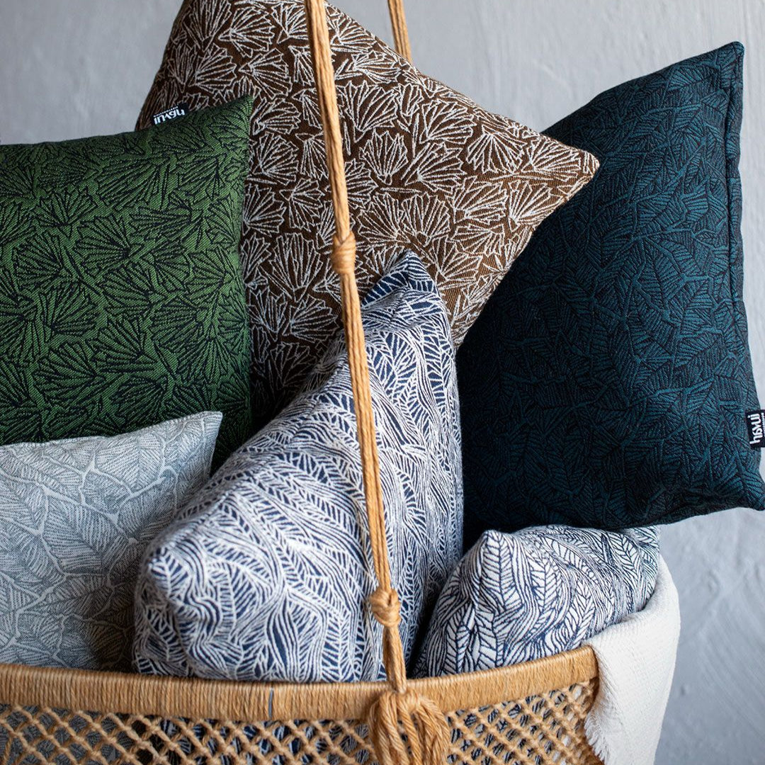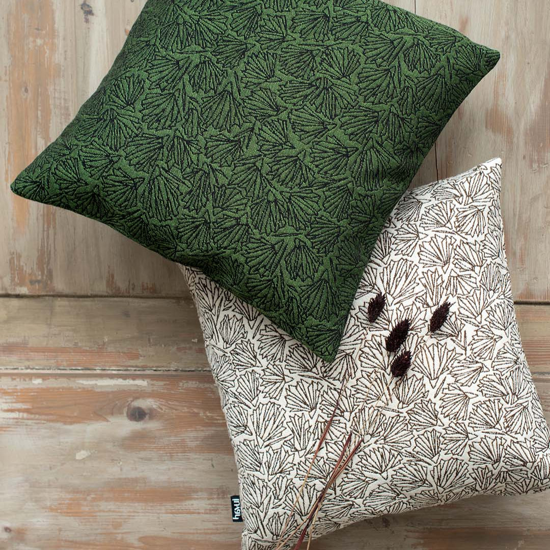 Der Kissenbezug Tupasvilla besteht aus einem gemusterten, robusten Jacquardstoff mit Woll- und Baumwollanteil. Der Stoff wird in Lapua, Finnland, gewebt. Das grafische Muster ist von der stillen Magie der Sümpfe und den ungezähmten Wölfen inspiriert, die sie bewohnen. Das Muster wurde von Saija Helin entworfen.