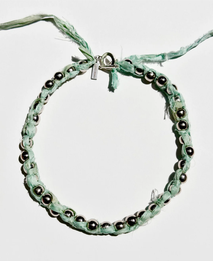 Je nach Anlass und Stimmung lässt sich die Kette individuell anpassen – durch Knoten oder einen versilberten Messingverschluss lässt sie sich einfach kürzen oder verlängern . Der sanfte Farbton und die vielseitigen Einsatzmöglichkeiten machen dieses Schmuckstück zu einem Lieblingsstück für jeden Tag und zum perfekten i-Tüpfelchen für festliche Anlässe . Der Schmuck wird in Los Angeles handgefertigt.