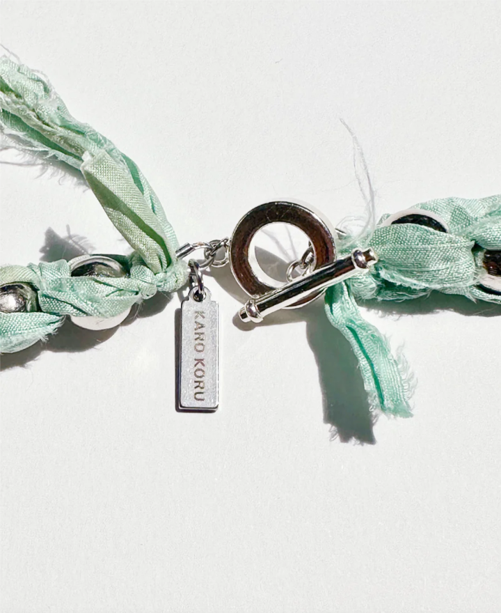 Karo Korus verspielte Kombination aus Vintage -Seide und Metall