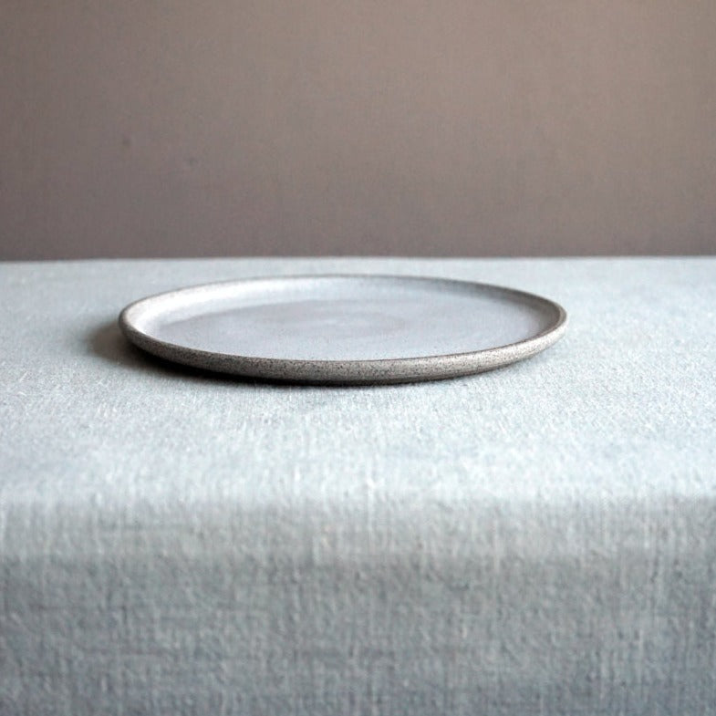 Ein Brotteller aus grauem Steinzeugton. Innen glänzende, lebensmittelechte Glasur. Spülmaschinen- und mikrowellengeeignet.