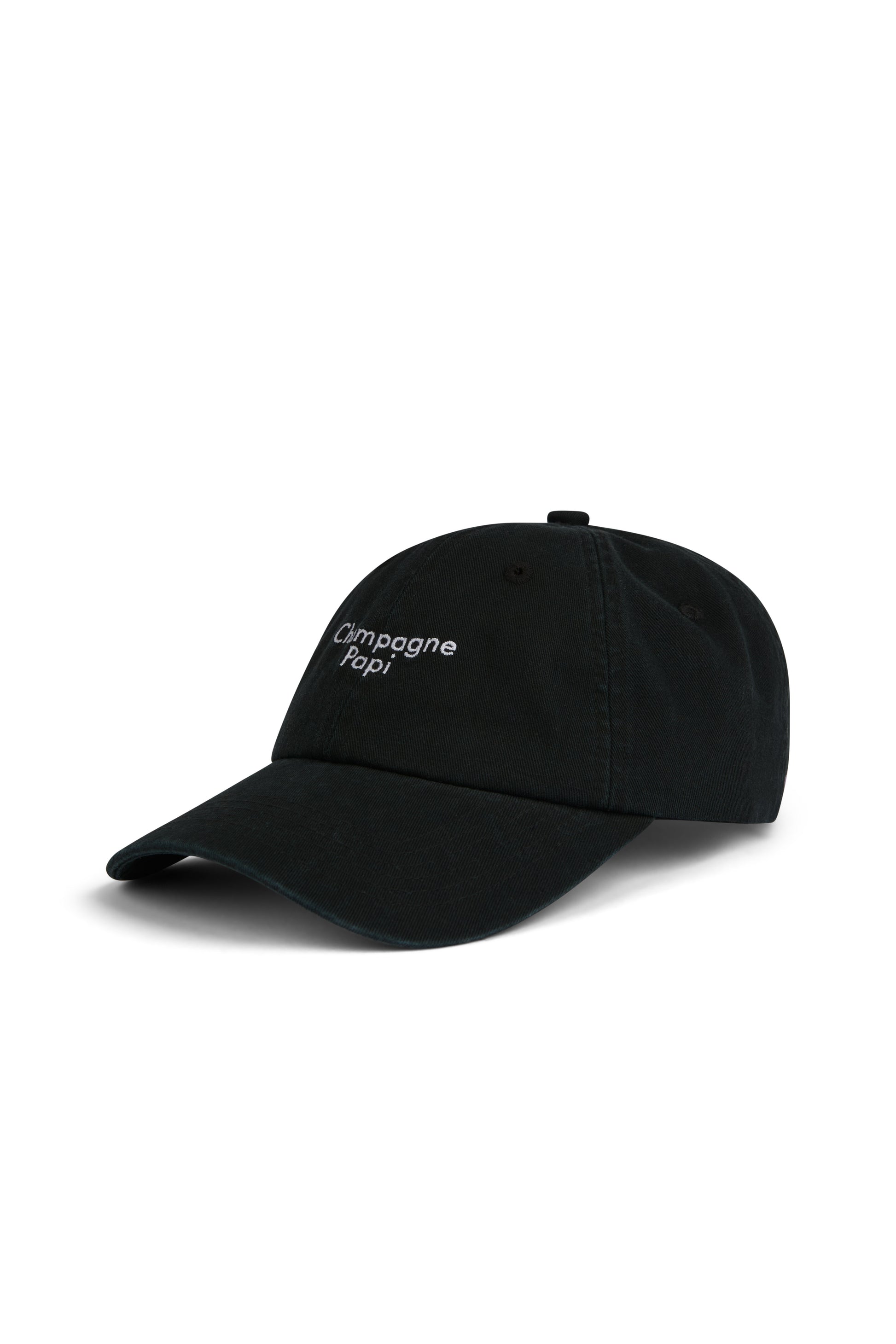 The Black Champagne Papi dad cap from Swedish brand Pica Pica is a carefree style staple for late brunches and sunset toasts. The deep black base combined with crisp white embroidery brings together relaxed confidence and a twinkle in the corner of your eye attitude.