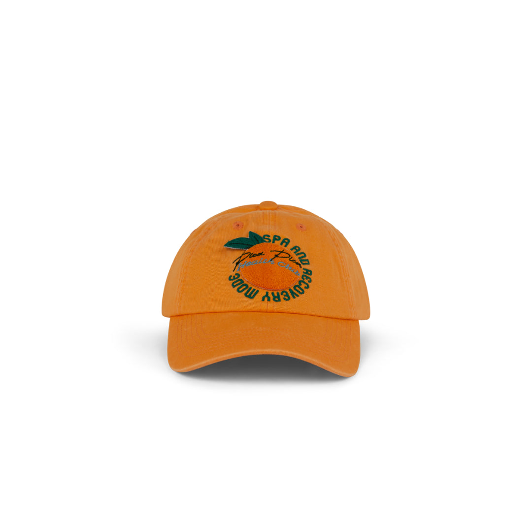The Orange Spritz dad cap is a sun-soaked tribute to spa days, recovery, and citrus vibes. Juicy green–orange–pink embroidery makes it the perfect cap for summer moods.
