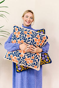 The pattern of the Terttu interior pillow is embroidered on woolen fabric, and it is available in two colors: the calm beige coloring fits well in every home and the colorful blue-lilac version brightens up everyday life with fun. The other side of the pillow is cotton fabric.