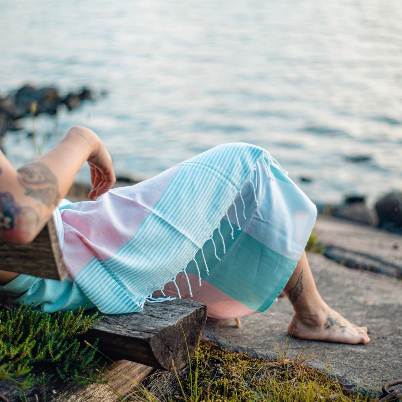The Vene smart size towel is a conveniently sized 70 cm x 140 cm hamam towel for hobbies, hiking, school and almost anything else. The small towel fits into a small space and weighs only 160 g. The towel dries quickly. Material 100% cotton.